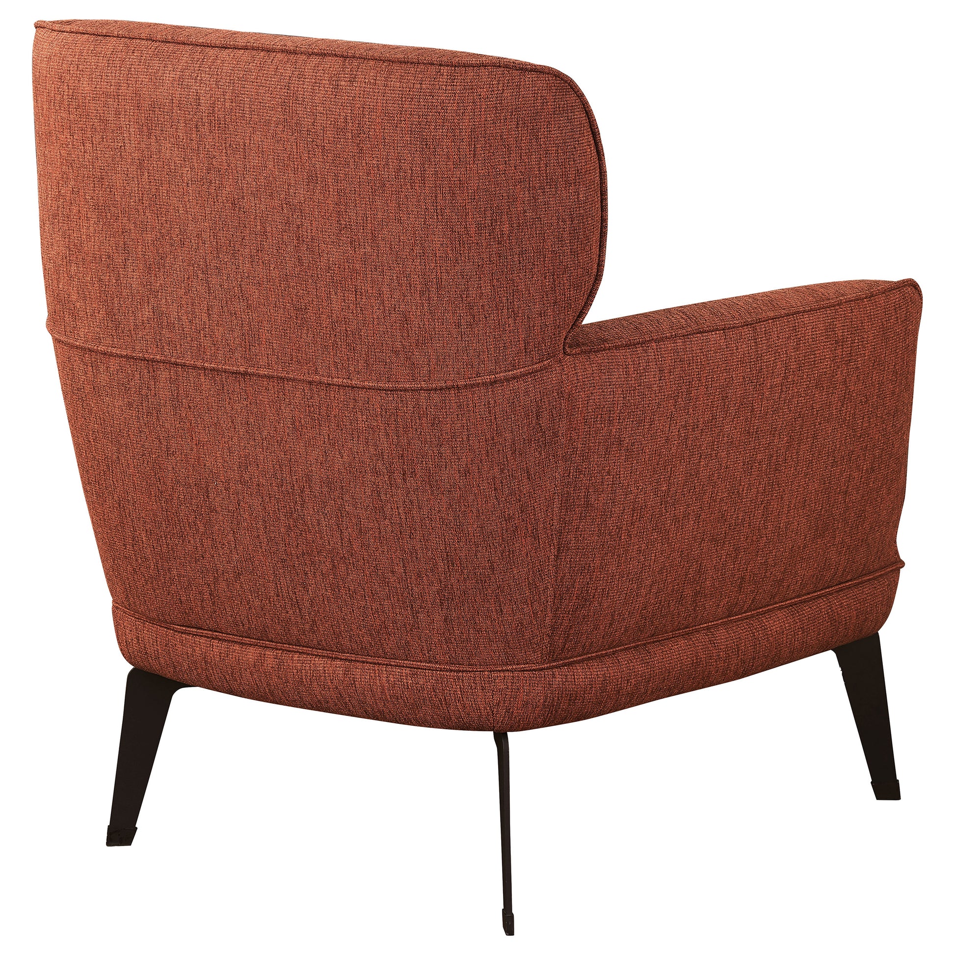 Check all the boxes for a comfortable and stylish addition to your living space. This chic accent chair reflects the best of both modern and transitional style elements. Gorgeous upholstery covers a chair made of wood products and padded with foam to create a luxurious seating experience. Rounded track arms and a deep non-removable seat cushion embellish the design of a chair that coordinates with a sleek seating group or sits alone in a library or bedroom. Set atop chic black metal legs, this chair becomes a favorite spot for stylish relaxation.