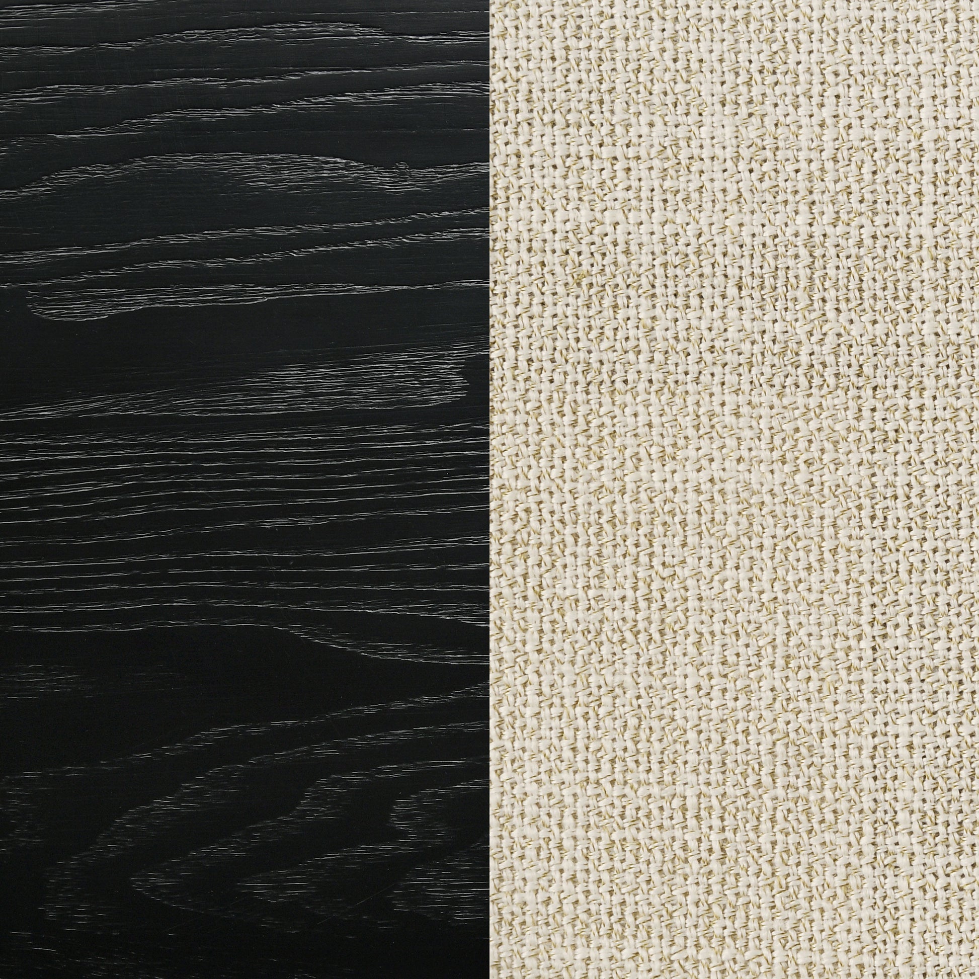 • Cream fabric-upholstered headboard and footboard framed in sleek black