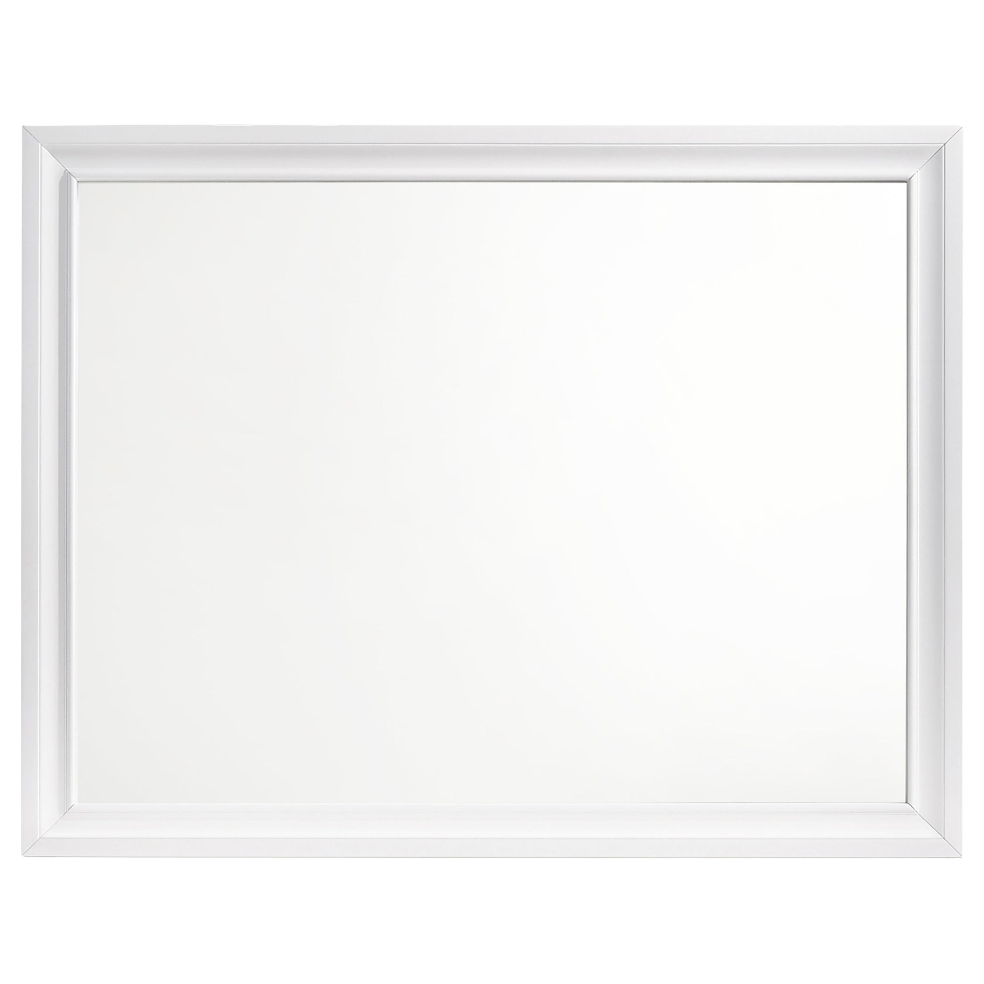 Complete your bedroom ensemble with this elegant rectangular dresser mirror. Designed with a beveled wooden frame, it offers clean lines that enhance its modern silhouette. The crisp white finish creates a light and airy look, adding brightness to any space. Built with a durable frame of solid rubberwood and engineered wood, this mirror is crafted for long-lasting strength and stability. Pair it with the matching dresser to achieve a cohesive and stylish bedroom presentation.