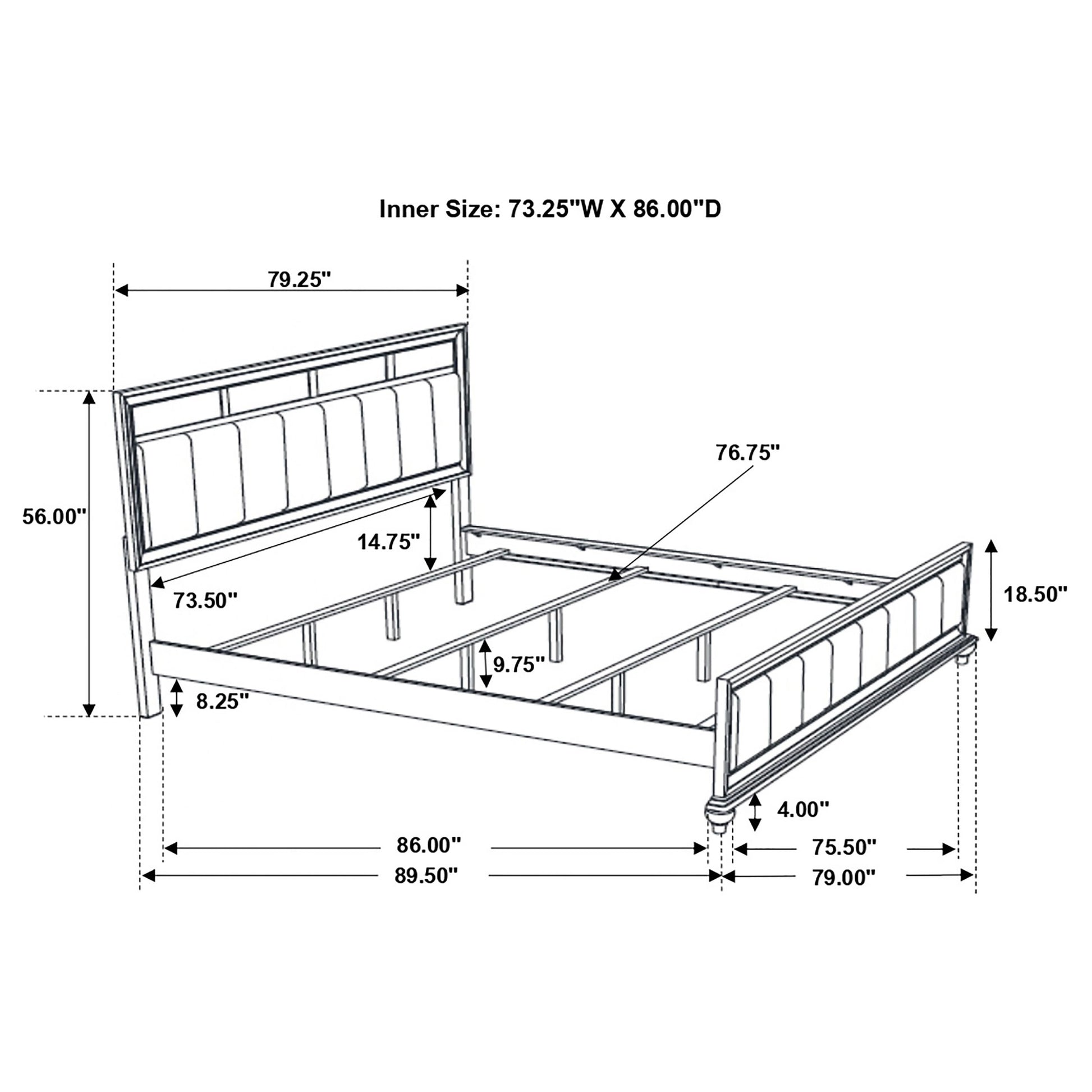 Infuse your bedroom with sleek sophistication and subtle glam with this panel bed. A tall headboard and matching footboard feature channel tufted panels wrapped in metallic leatherette, creating a striking focal point. The crisp white frame is detailed with molding for depth and finished with turned feet for timeless charm. Sparkling accents add a touch of radiance, while the bed is crafted from solid rubberwood, engineered wood, and okume veneer for strength and durability in everyday use.