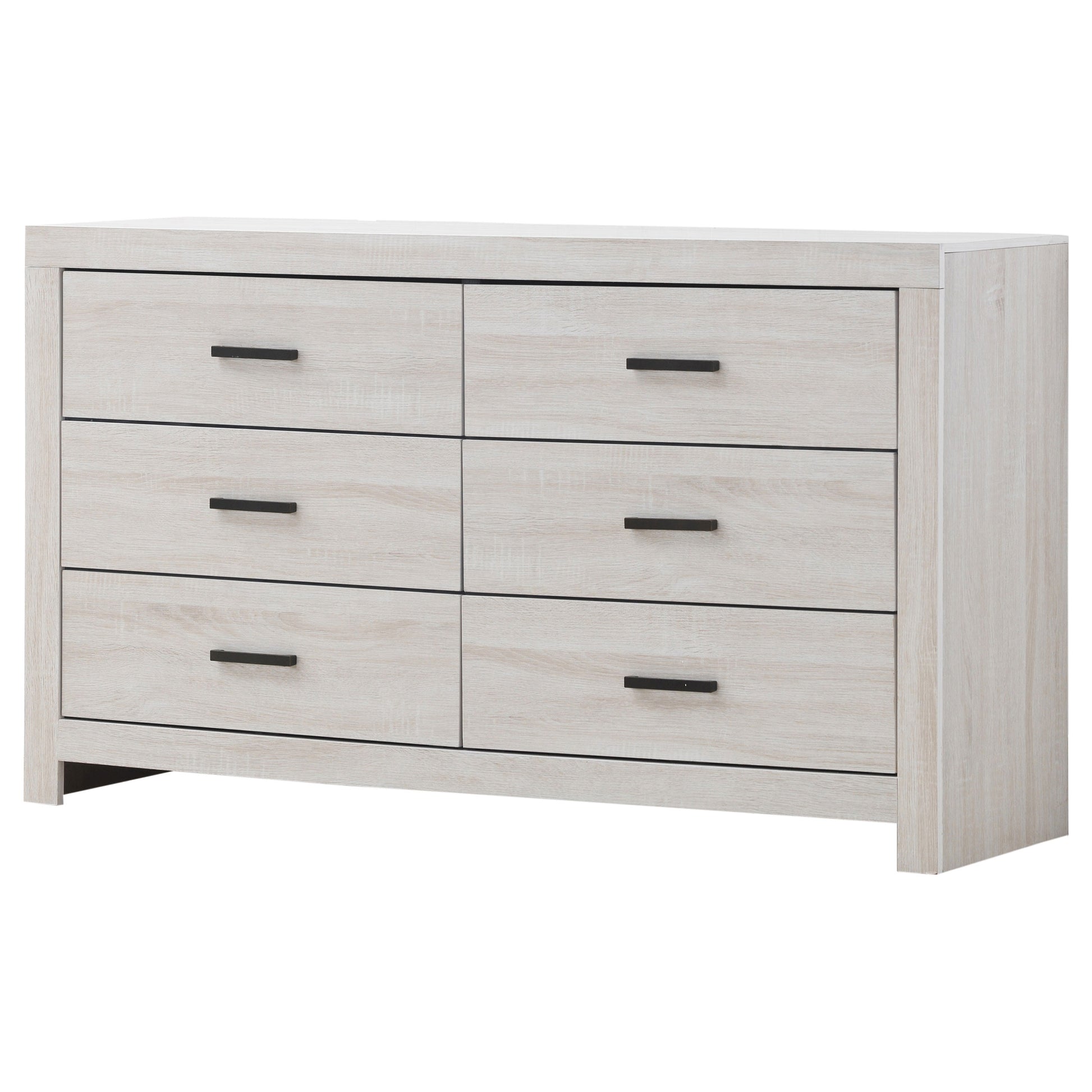 This six-drawer dresser offers a perfect balance of style and storage. Its clean-lined frame complements modern and contemporary spaces, while six spacious drawers provide ample room for clothing and accessories. Crafted from engineered wood with a durable laminate veneer, this dresser is built for everyday use. Matte dark bronze handles add a refined contrast, enhancing its sleek and functional design.