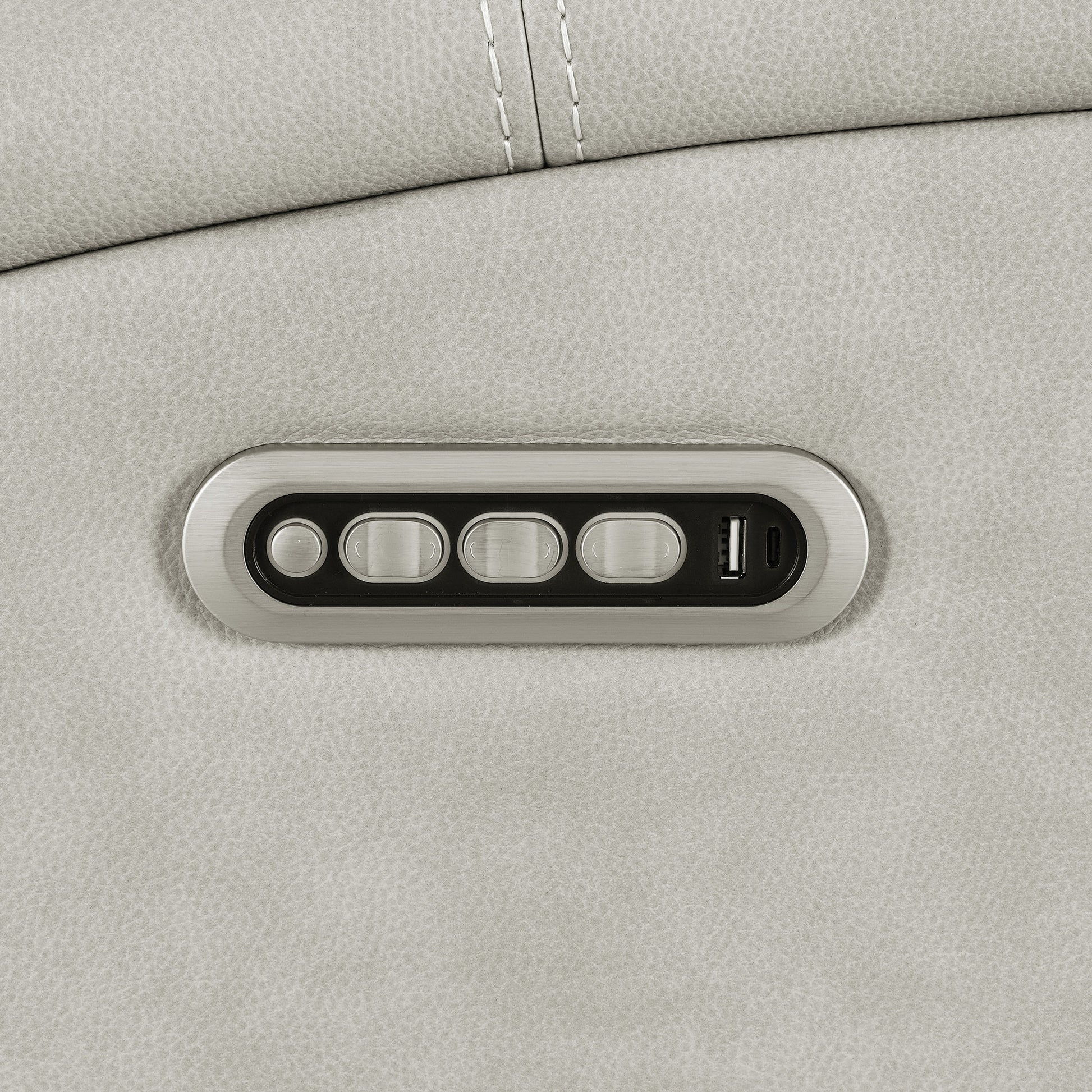 A sanctuary of comfort and thoughtful design, this zero gravity triple power reclining sofa turns the everyday into something extraordinary. Upholstered in soft leatherette with contrast stitching, its sculpted silhouette offers both structure and serenity. Sink into deep, supportive cushions while power recline, headrest, and lumbar settings respond with effortless grace. A drop-down console reveals hidden storage and ambient LED lighting, while the sleek control panel—complete with dual USB ports—keeps everything within reach. Even in moments of stillness, a rear power connection and emergency battery option ensure comfort never loses power.