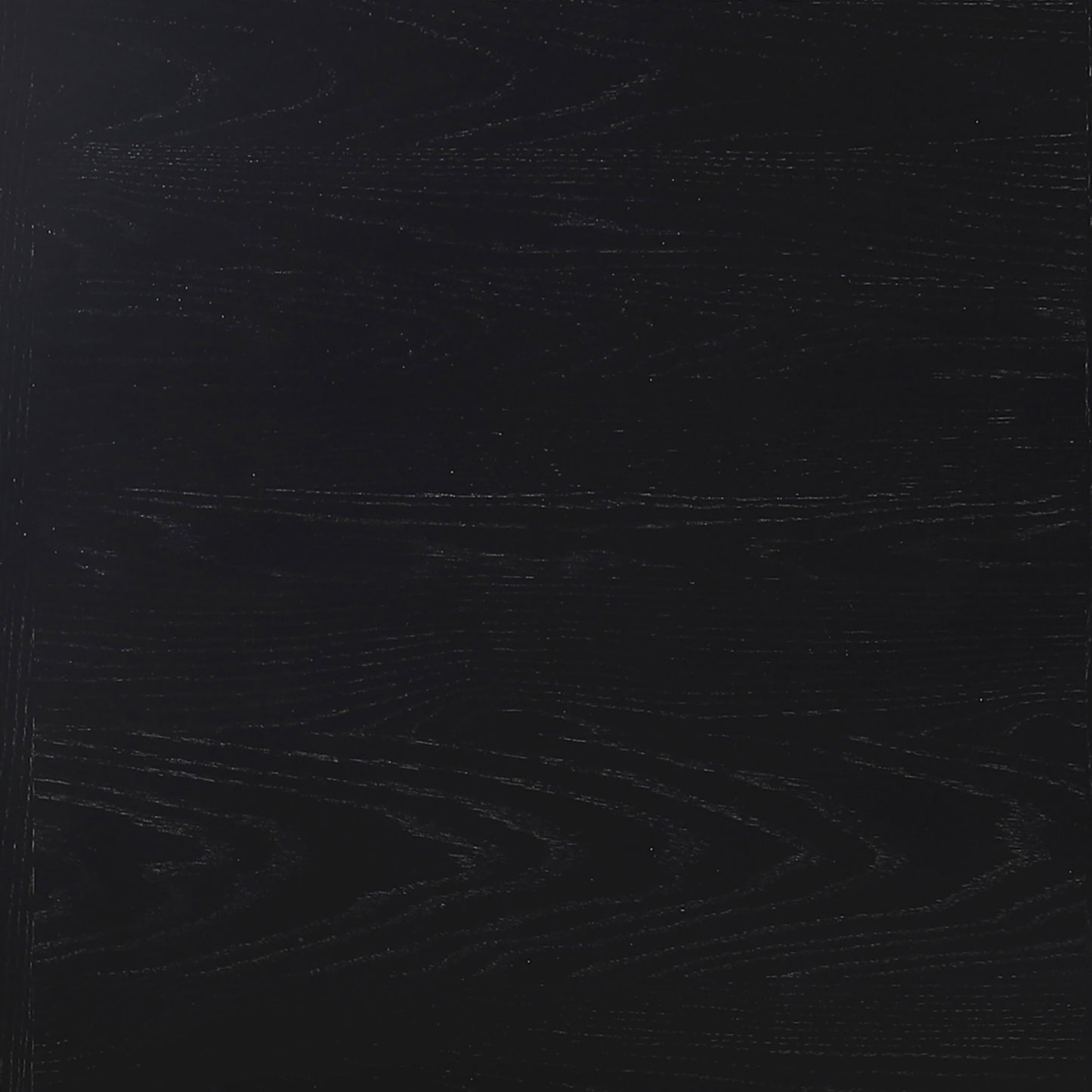 Introducing a beautiful dining room collection with clean, modern lines. The dining table boasts a oak veneer top with a black finish and a stunning tambour base design featuring fluted patterns on the double pedestal legs. The mid-century-inspired dining chairs have cushioned arms wrapped in durable charcoal grey fabric, offering comfort and style for any casual dining room.