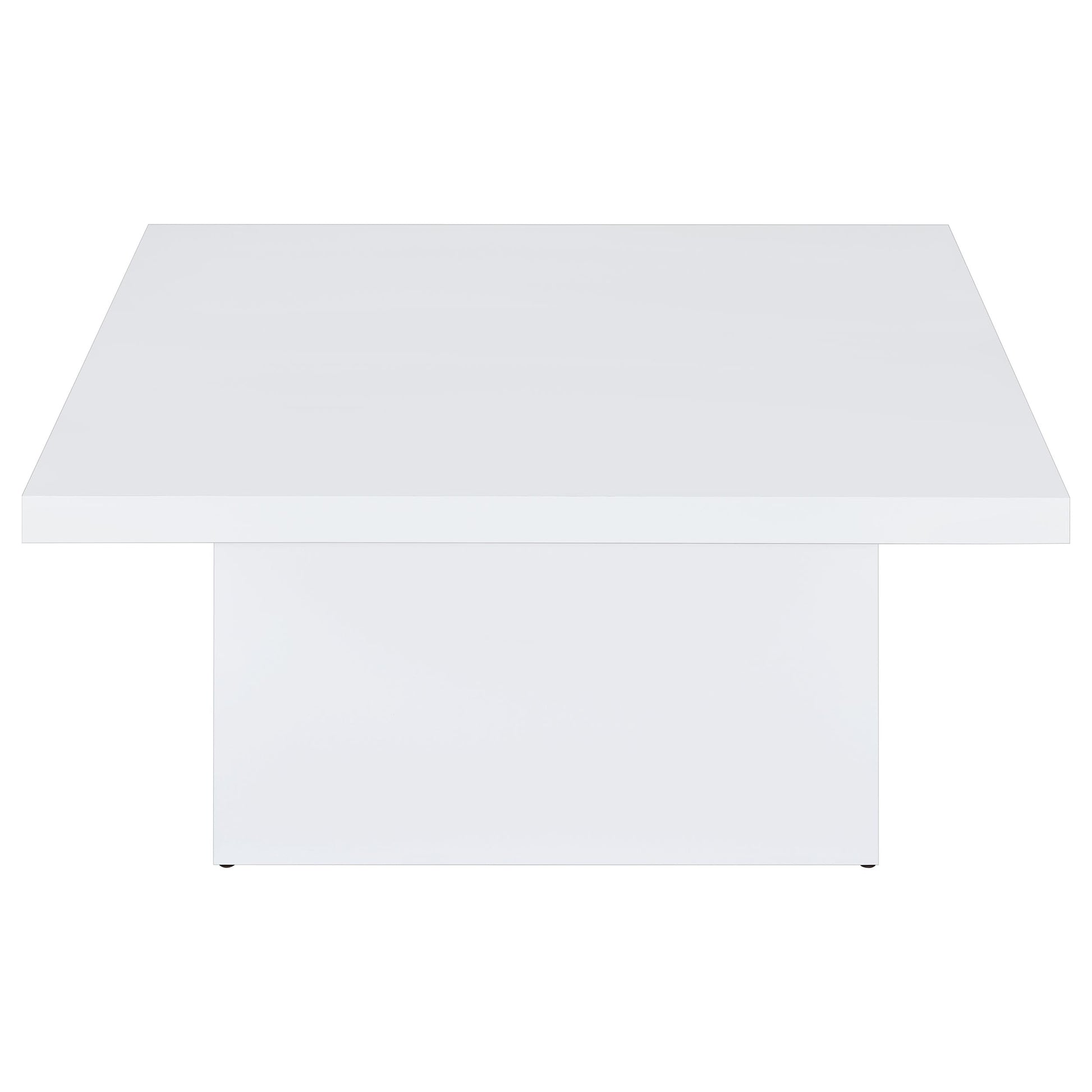 Radiant and refined, this coffee table set combines sculptural structure with a glossy white finish. Each piece features a thick square top resting on a matching plinth base, offering visual weight and clean symmetry. The white polyurethane high gloss surface reflects light, enhancing contemporary interiors with brightness and balance. Made from engineered wood, this set is perfect for modern or glam-inspired spaces.