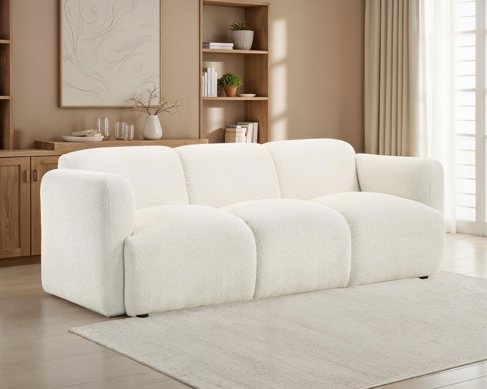 • Ideal for modern living rooms seeking both softness and subtle sophistication