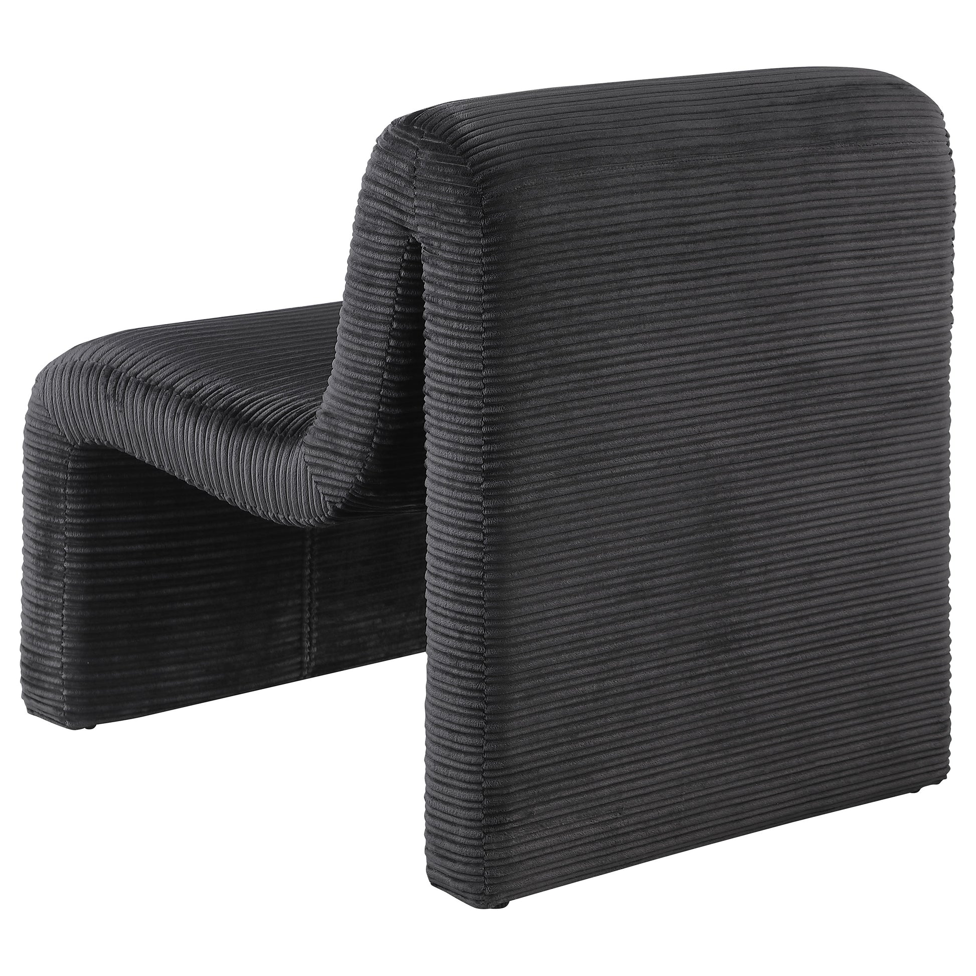 Introduce a sculptural component to your compelling seating group with this modern accent chair. It's an armless profile with a sinuous curvature that brings alluring elegance in any setting. Neutral upholstery has a ribbed look, creating impeccable texture and depth. The chair is structured with metal and plywood for durability, covered in foam for excellent cushioning that promotes comfort. Choose a pair for a refined living room or den setting.