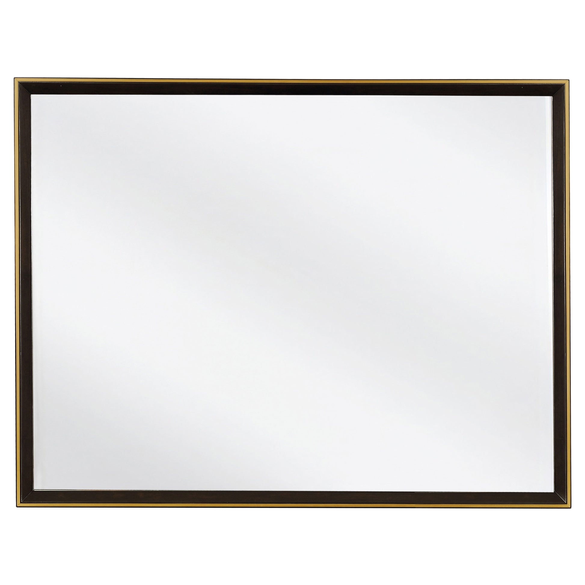 The perfect example of stunning modern design, this California king five-piece bedroom set is full of geometric details. Featuring an elongated headboard, the neutral upholstery combines with the warmth of the smoked peppercorn finish to add depth. Versatile and streamlined, this set comes with a nine-drawer dresser, two-dresser nightstand and shelf, and two-drawer chest with doors. Retro inspired details offer structure and personality. Transform your space with the openness of the clean and structured mirror.