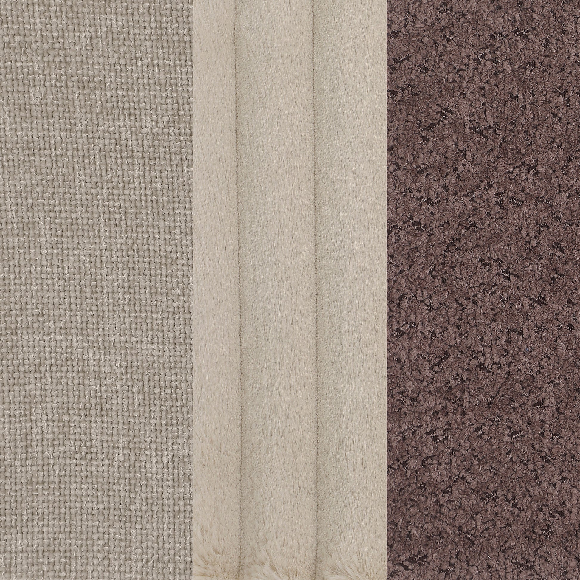 Put together a thoughtful living room seating ensemble with this three-piece modern sofa set. The sofa and loveseat showcase a curved kidney silhouette, with the armchair adding a rounded profile as together, the three offer inviting aesthetics. Each features sinuous springs and pocket coils, with foam cushions and tight upholstery. Soft beige fabric is light and airy, offering warmth and refined elegance to surrounding decor. Comfortable accent pillows add a touch of contrast in color while providing flexible comfort for lounging or entertaining.