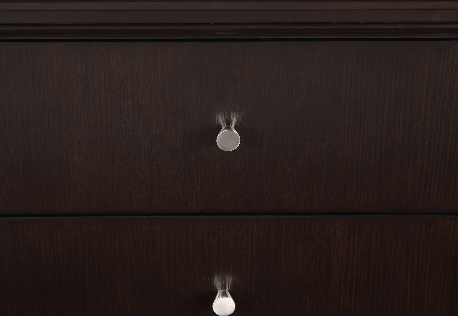 • Drawers feature two petite, round metal knobs