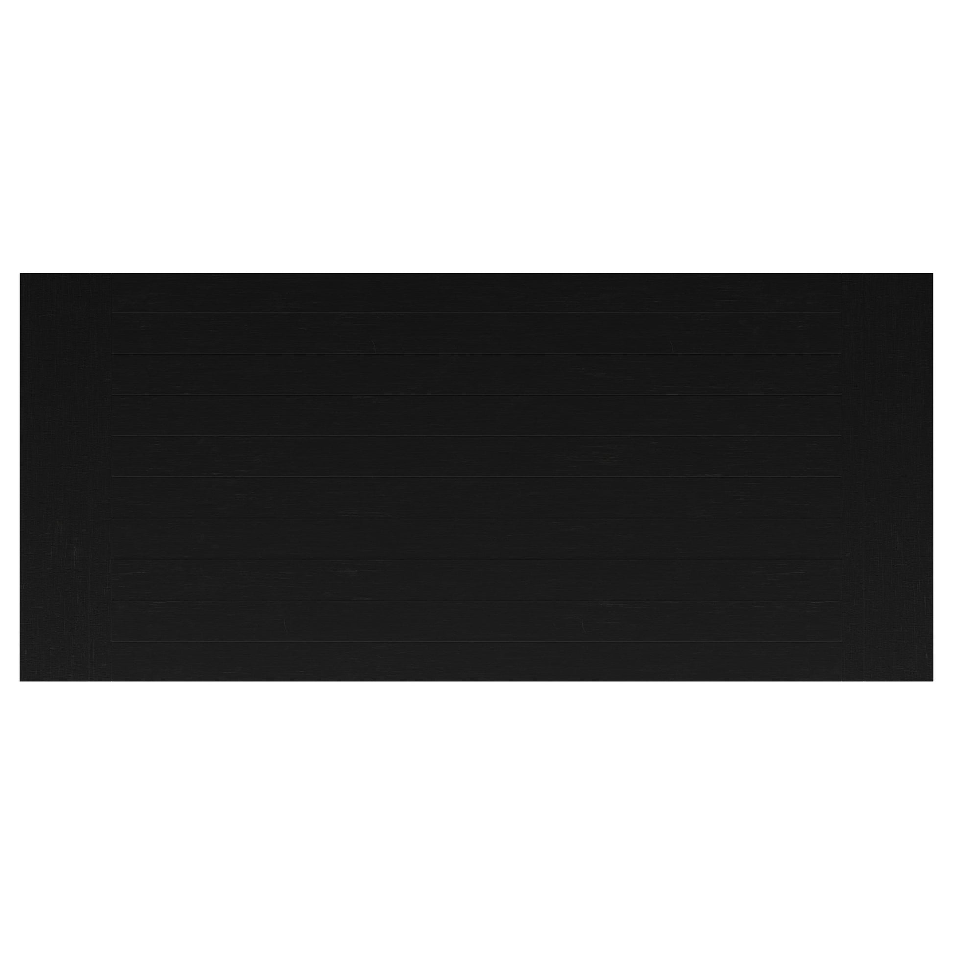 • Planked tabletop highlights natural wood grain with a sleek black finish
