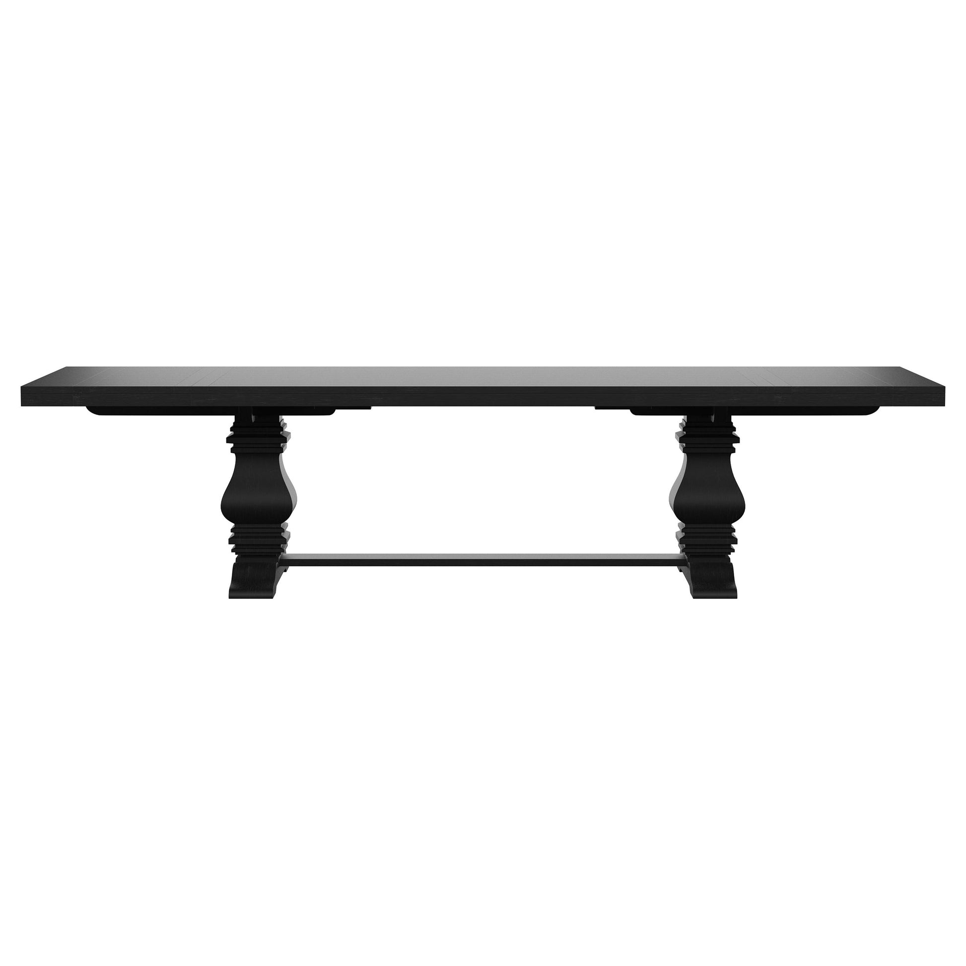 Transform your dining space with the perfect blend of timeless elegance and modern comfort. This dining set showcases a stately rectangular table with a double pedestal trestle base, evoking romantic charm and artisanal craftsmanship. The antique black finish lends a dramatic, yet versatile touch to any dining room. Paired with beautifully tufted dining chairs, the set brings a soft, inviting aesthetic, with plush cushioning and a graceful wingback silhouette. Designed for hosting family dinners or special gatherings, the table expands easily with a removable leaf, ensuring ample space for cherished guests. This dining set combines refined detail and functional versatility, creating a warm and welcoming space for every meal.