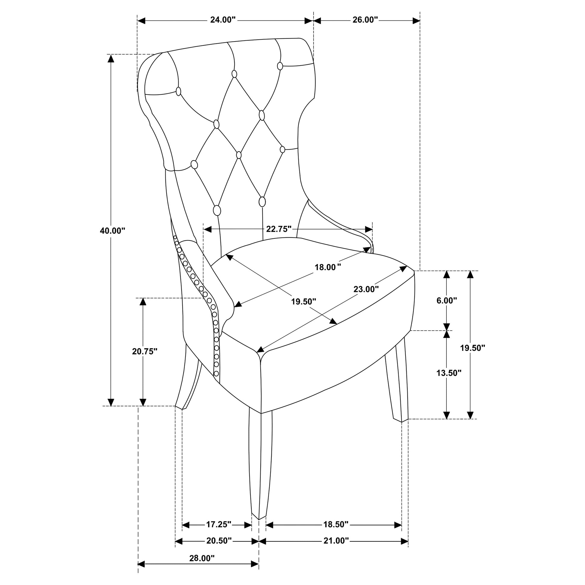 • Nailhead trim and soft upholstery with button tufting on the chairs bring an elegant finishing touch