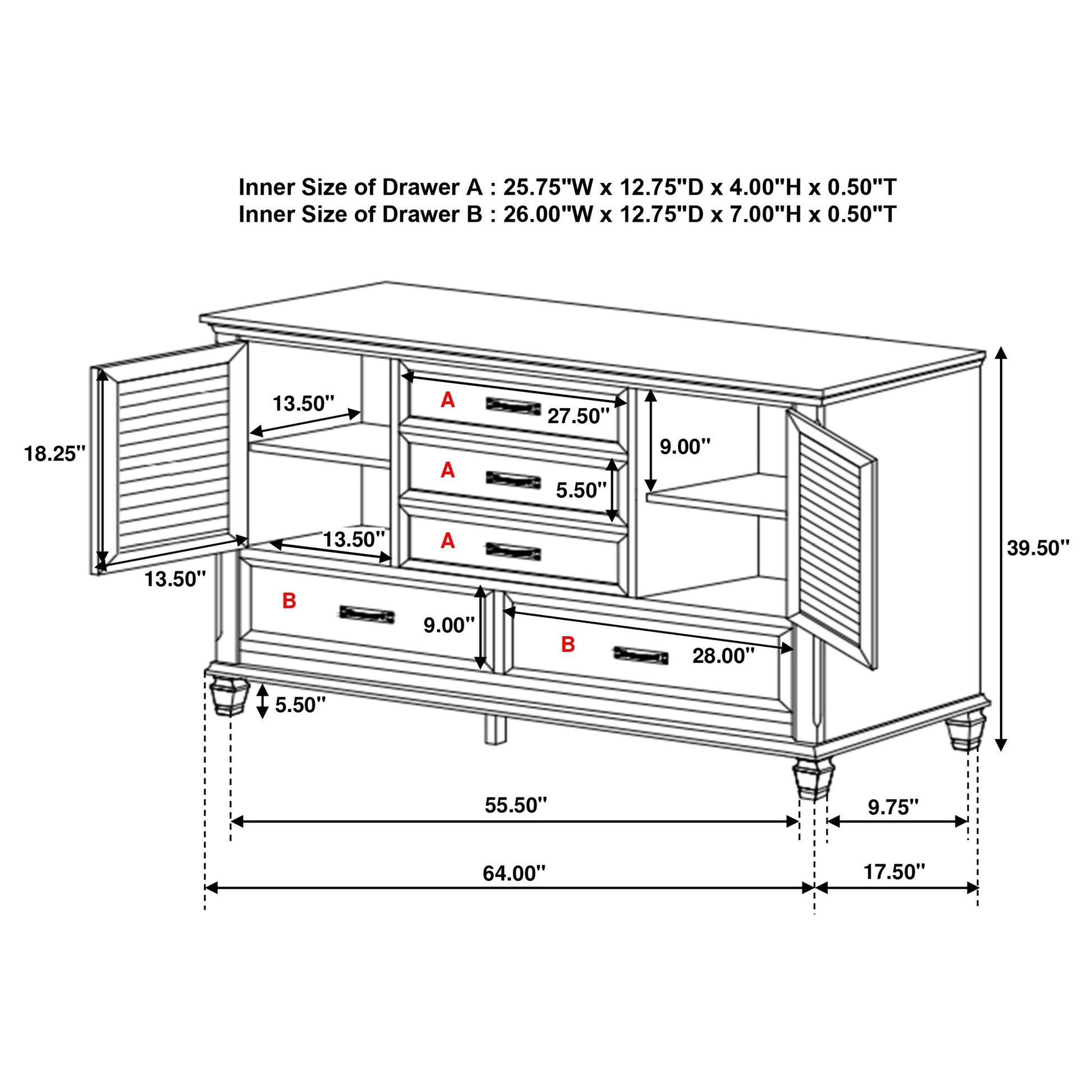 For stylish practicality and convenience, this superb 4-piece bedroom set from the Franco collection has what it takes. The impressive bed has an imposing headboard and low footboard with exquisitely detailed panels and design. The drawers on the nightstand and dresser operate with soft-closing guides that offer convenience and durability. The nightstand also includes a pull-out service tray with convenient cord access to keep all your gadgets fully charged. A rectangular mirror rounds out the set, which is warmly finished that's sure to match any bedroom decor.