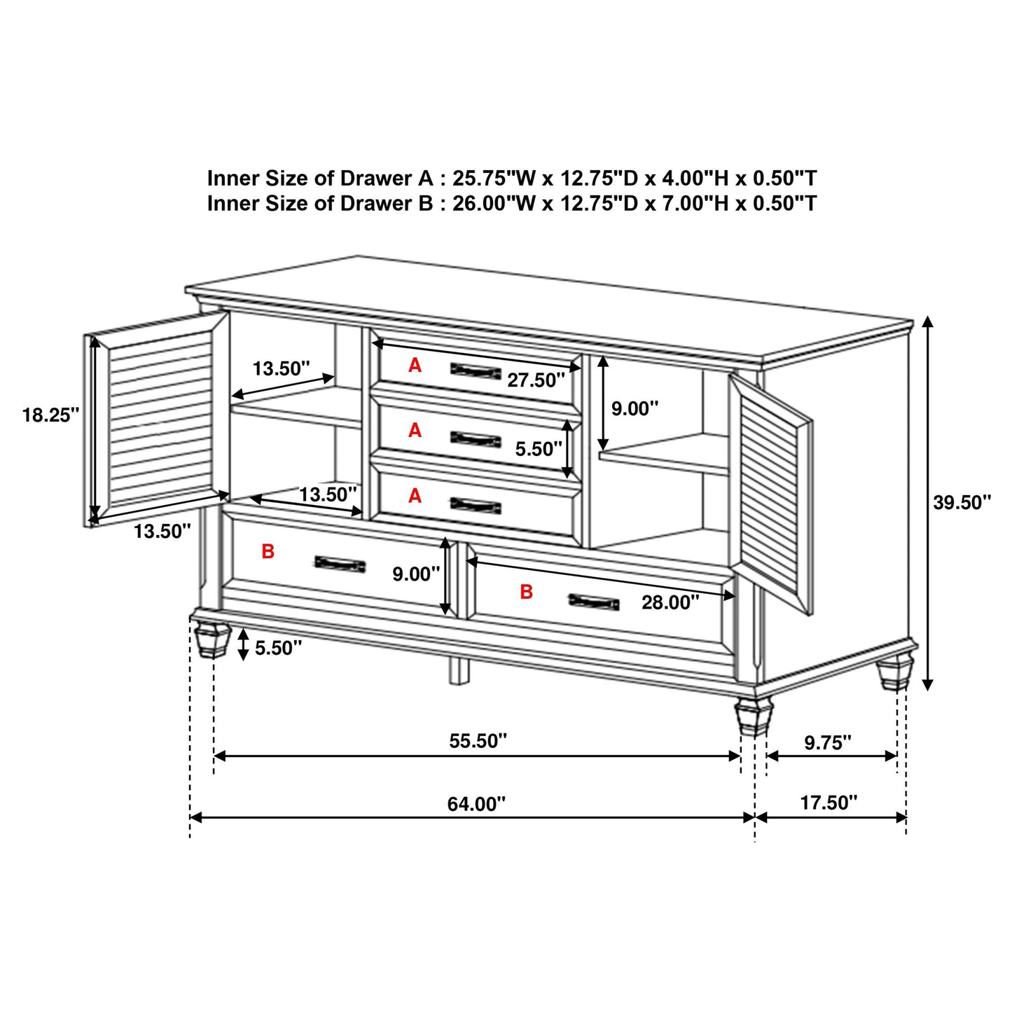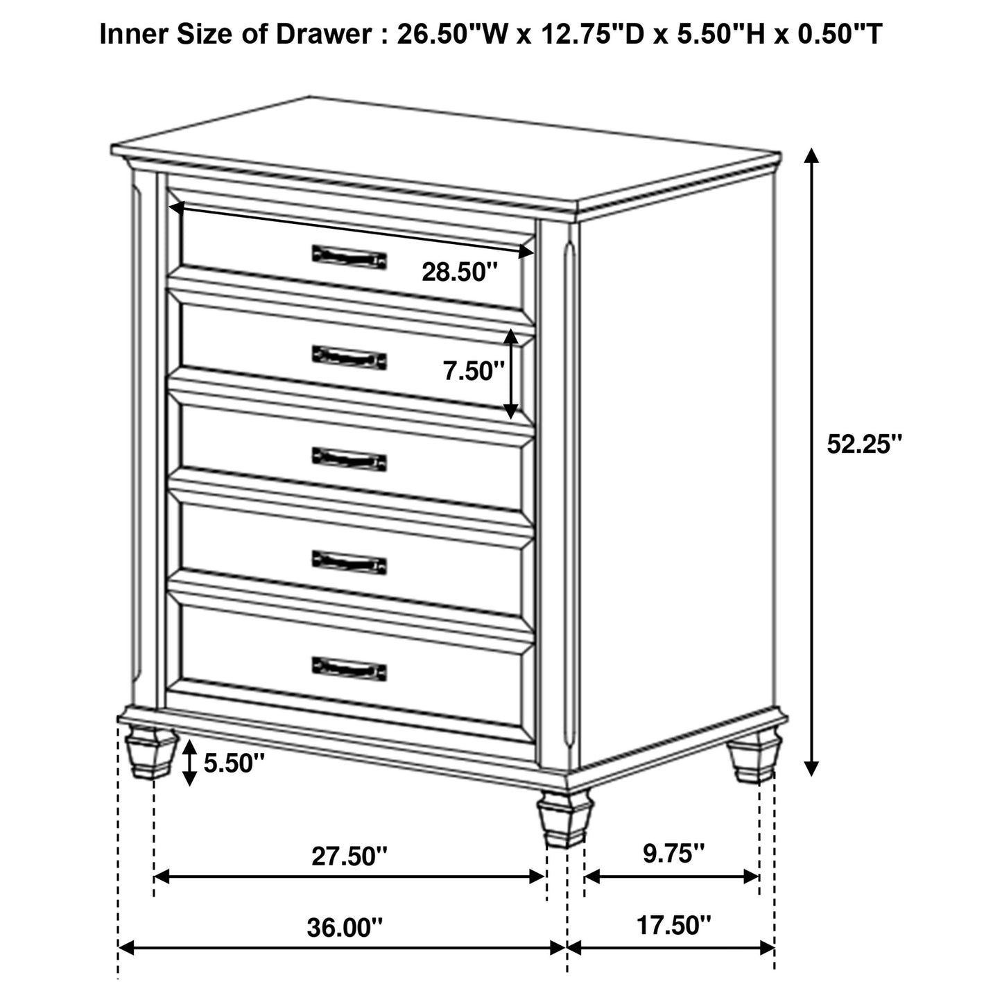 • Drawer Weight Limit: 45 Lbs