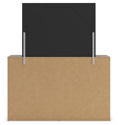 Chalanna King Upholstered Storage Bed with Mirrored Dresser