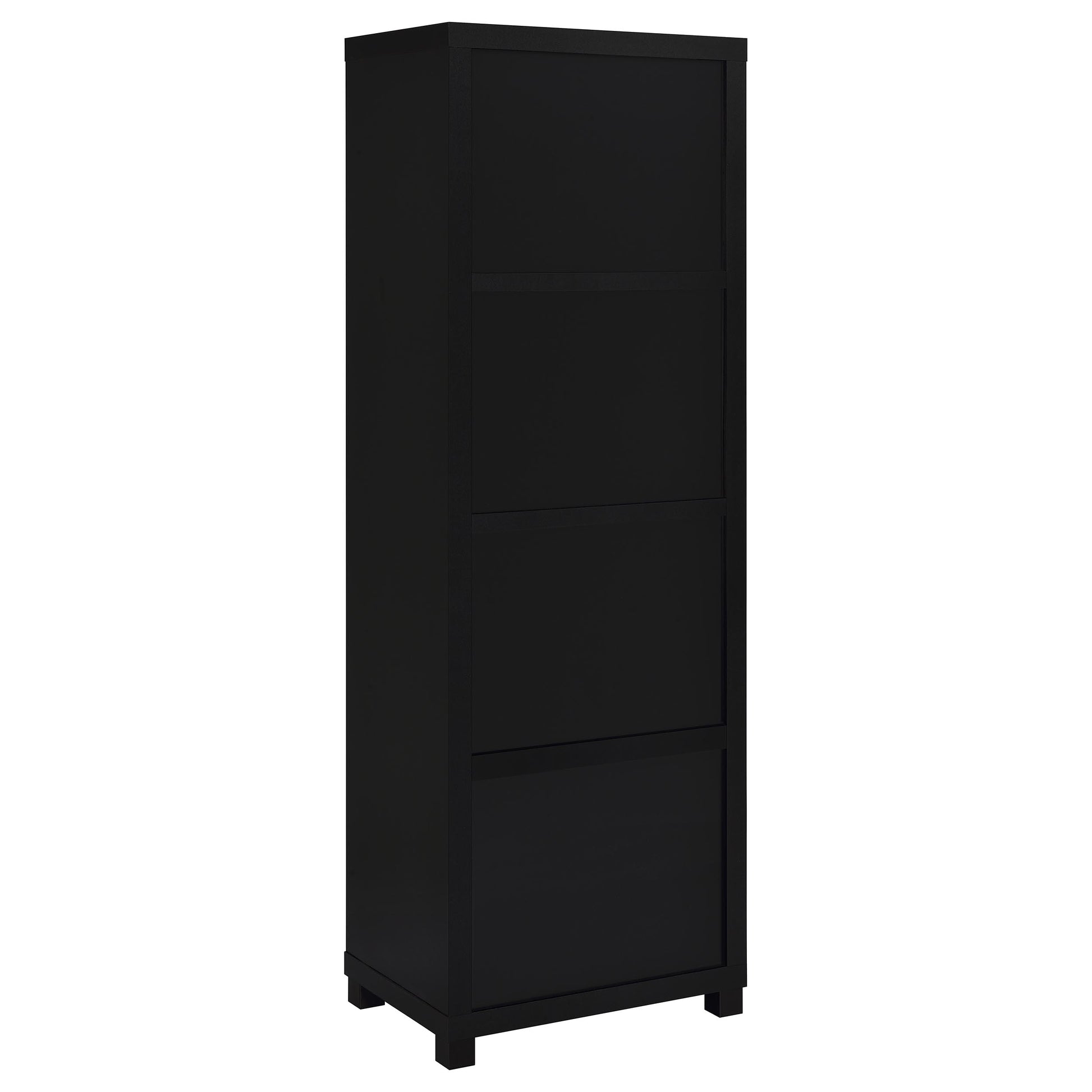 • Media towers feature three open shelves and a single-door cabinet for versatile storage