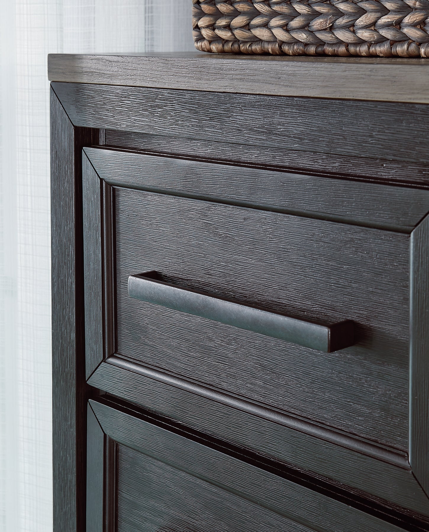 | Details | B989B4: Includes king panel headboard, storage footboard and rails with roll slats, Made with hardwood solids, select oak veneers and engineered wood, Two-tone finish (brushed black and dusty grayish brown wood tone), Headboard with picture frame moulding, Footboard with two deep drawers, Smooth-gliding soft-close drawers with fully finished interiors and dovetail construction, Sleek drawer pulls with black finish, Bed does not require additional foundation/box spring; accommodates most zero clearance adjustable bases with the addition of a bunkie board, Mattress available, sold separately, Assembly required, B989B1: Includes dresser and mirror, Made with hardwood solids, select oak veneers and engineered wood, Two-tone finish (brushed black and dusty grayish brown wood tone), Sleek drawer pulls with black finish, 11 soft-close, smooth-gliding drawers with fully finished interiors and dovetail construction (top drawers felt lined), 5 drawers with brushed black finish; 6 drawers with grayish brown wood tone, 3 drawers located behind each door, Mirror mounts to back of dresser, Assembly required, | |