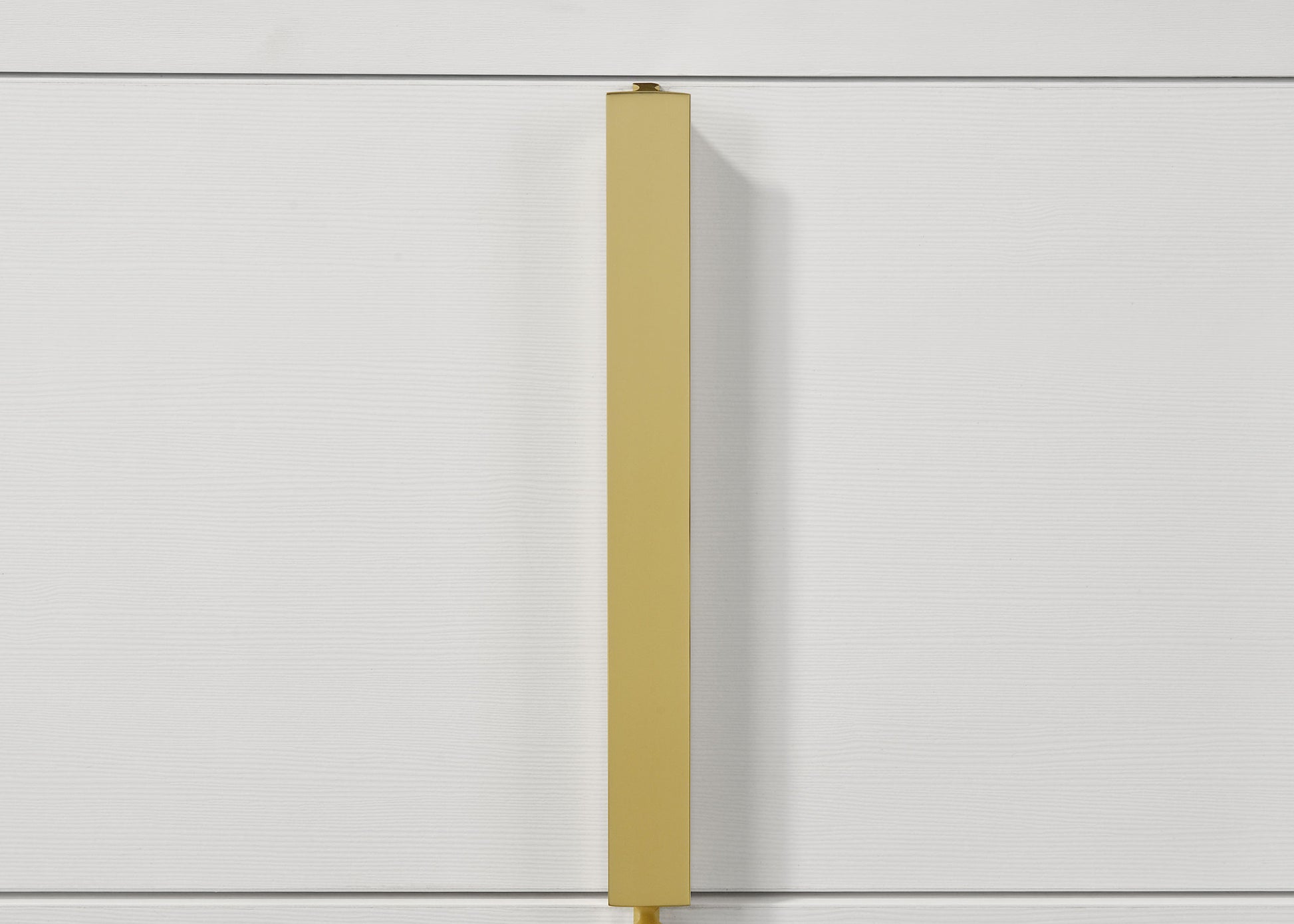 • Vertical gold metal drawer hardware for unique impact