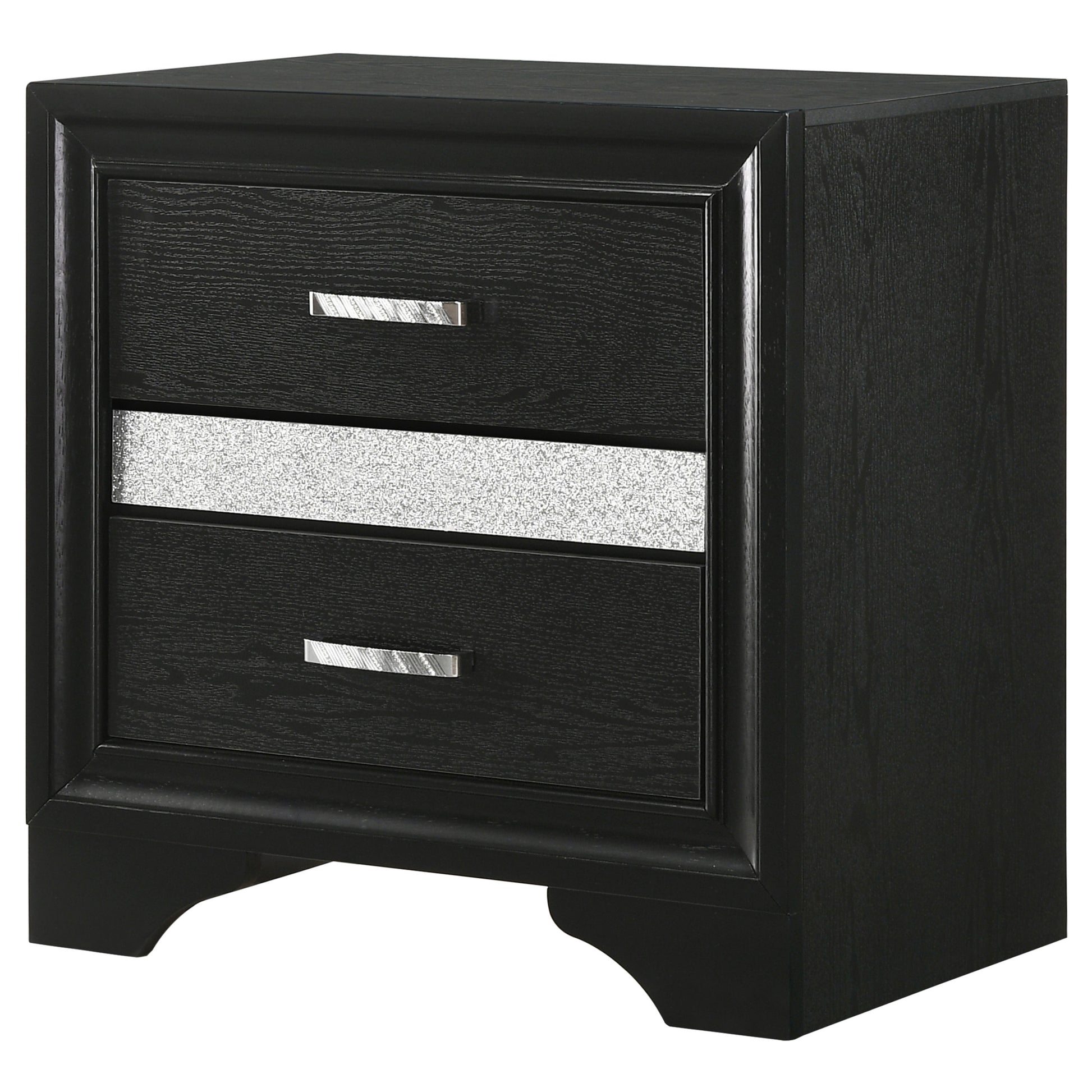 Infused with timeless glamour, this three-drawer nightstand brings refined character to any bedroom. Its linear profile is accented by elegant framing and a glittering center panel that conceals a hidden felt-lined drawer, ideal for delicate accessories. Smooth metal-extension glides ensure effortless drawer operation, while crystal-inspired pulls catch the light with radiant sparkle. Built from engineered wood and finished in a textured laminate veneer, it delivers durability with sophisticated transitional charm.