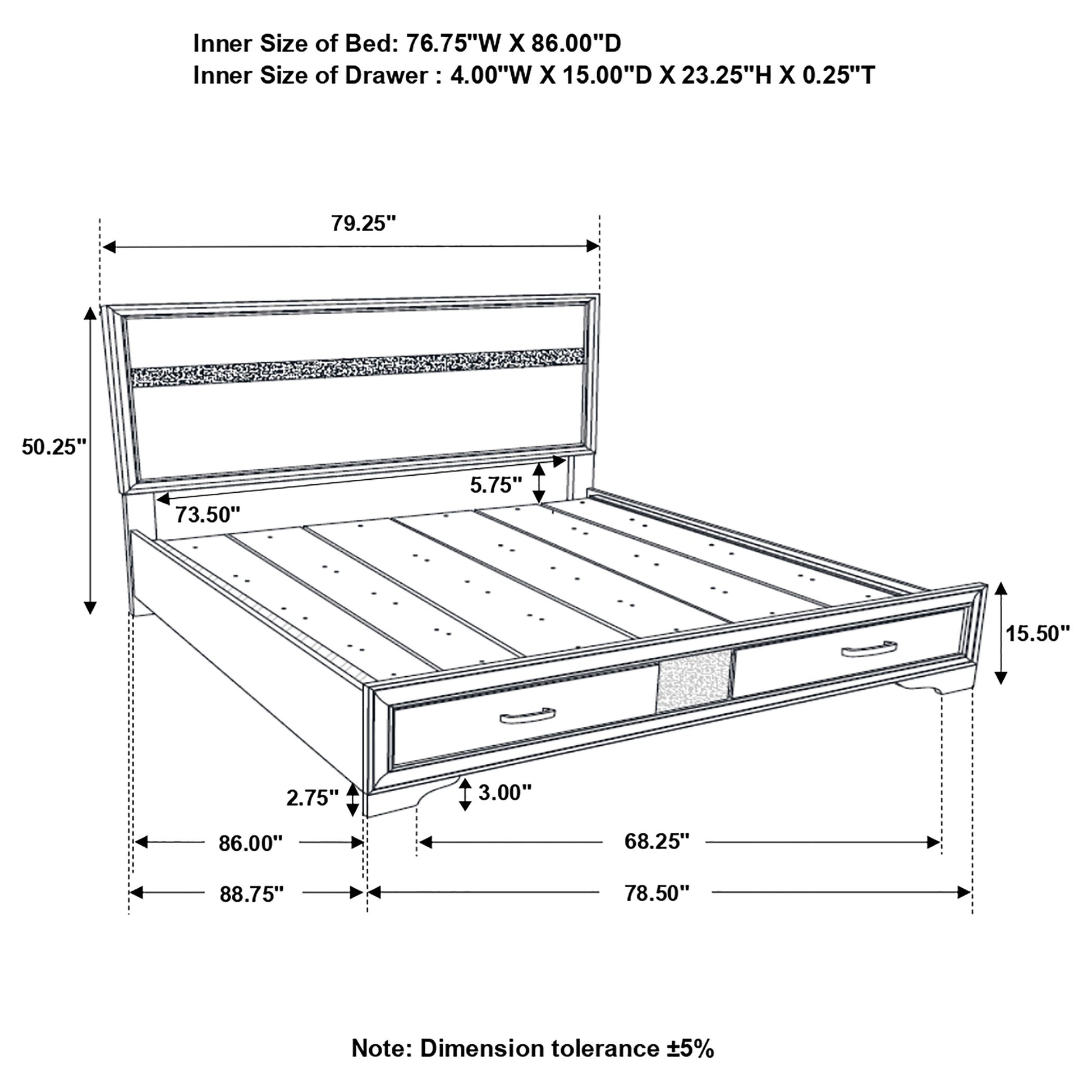 This alluring bed from the Miranda collection has both fashion and function. It features crisp lines and a headboard that's as simple as it is impressive. The footboard is built with two roomy drawers to hold extra sheets and blankets. The bed has an effortless timelessness and elegance. Add to the bedroom for a charming ambiance that's sure to please.