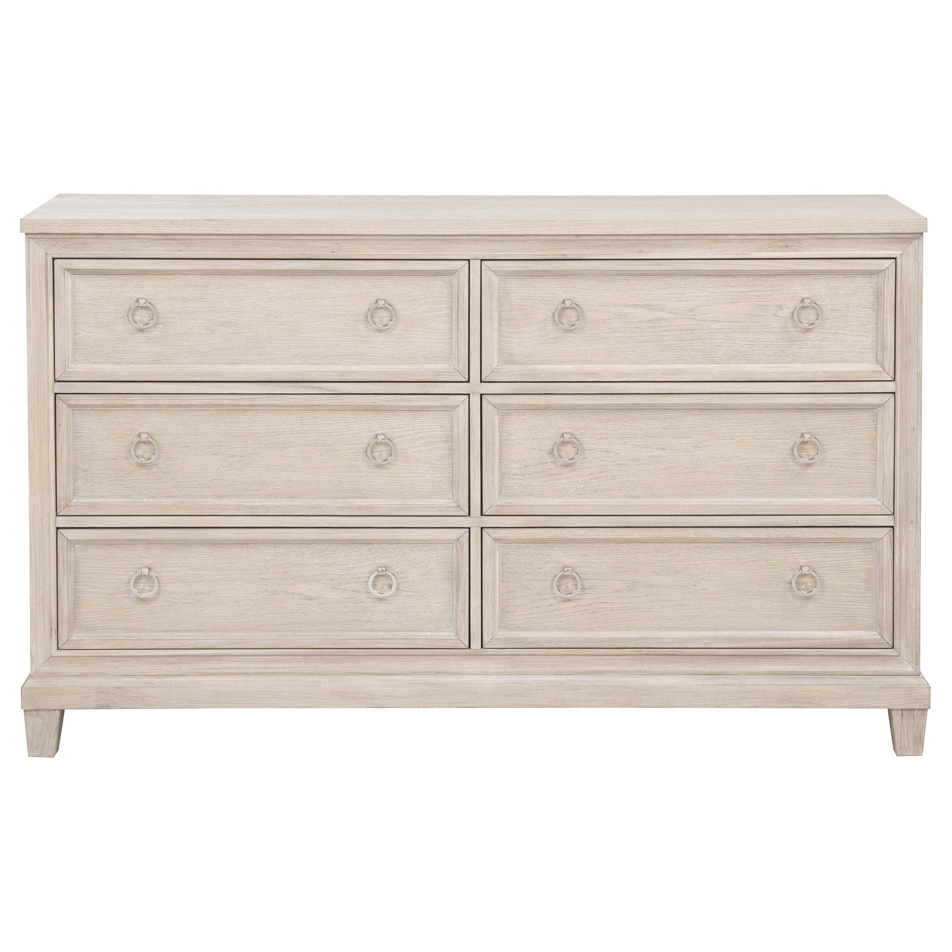 • Six-drawer dresser with clean lines and stepped trim for classic bedroom appeal