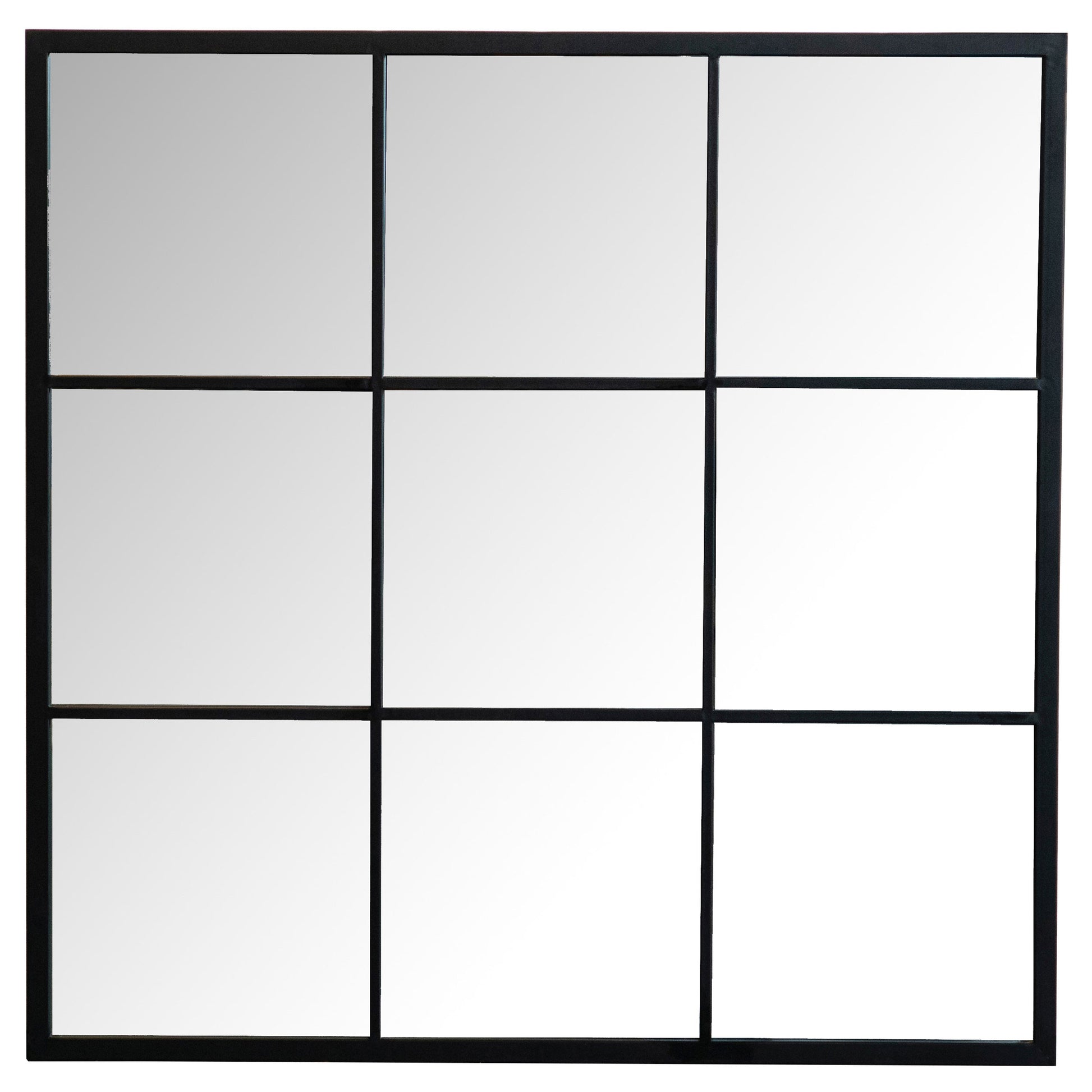This square mirror features a classic windowpane layout, bringing timeless symmetry and charm to any interior. Divided into nine mirrored panels by slender black trim, it creates a French-inspired grid effect that adds depth and balance to walls. The bold black frame complements a variety of design styles, from traditional to transitional. Ideal for bathrooms, foyers, or living rooms, this wall mirror helps brighten tight spaces and adds architectural structure.
