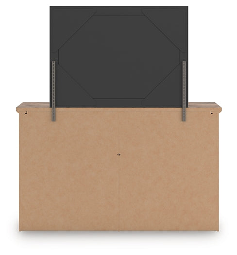 Classically chic. This dresser with mirror marries traditional design with modern accents. Its deep brown finish recalls the authentic touch of hickory grain for a rich look and feel. Assorted drawers neatly store your essentials in charming fashion. Sincere in its styling, this piece sets the scene for a warm, welcoming vibe in your bedroom.