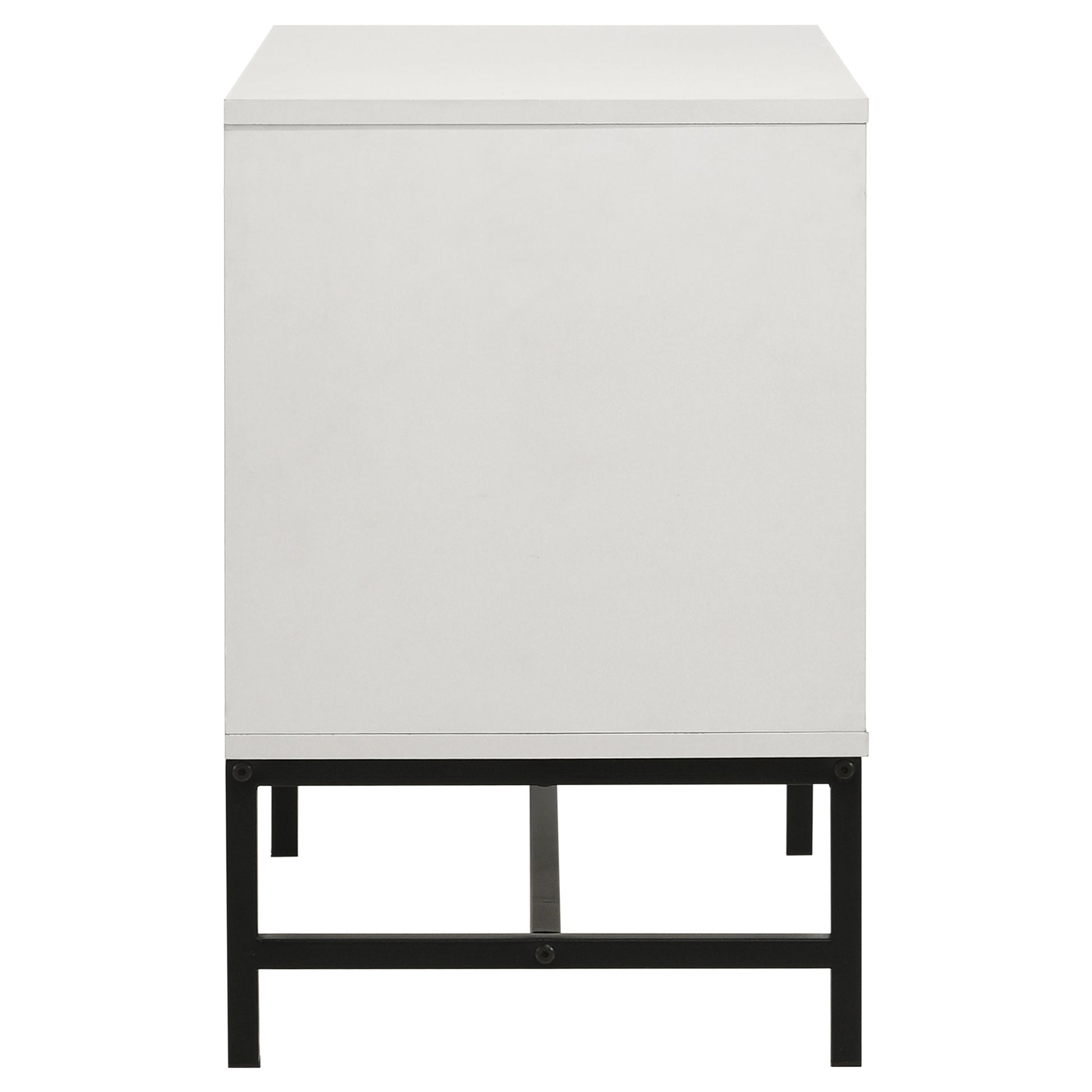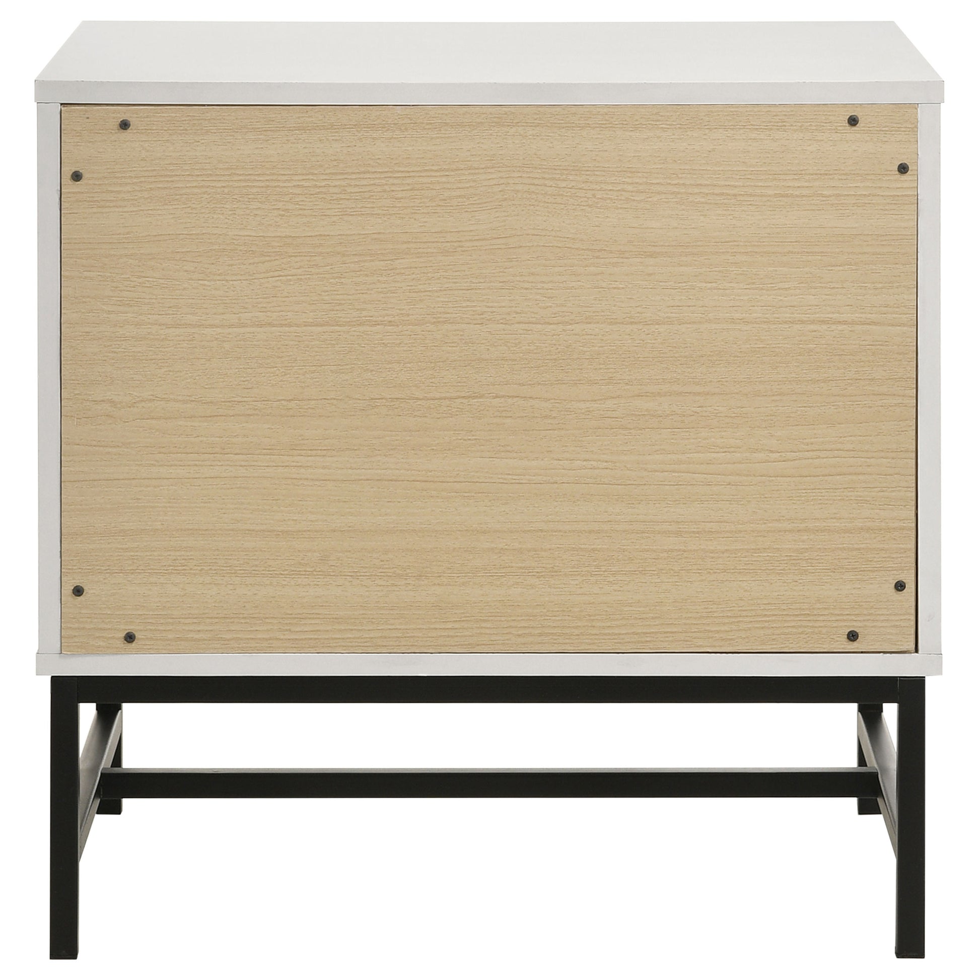 Put a fresh spin on bedside storage with a modern two-drawer nightstand. It shows off a clean, straight-lined silhouette, complete with easy drawers for nighttime essentials and personal items. Its wide top is big enough for a clock, reading lamp, and other items, creating a stylish display in your contemporary bedrooms. The nightstand is augmented with a black finish base with slim, straight lines, and bar pulls, adding appealing contrast and dimension. Choose this nightstand for a sleek, simple look in a minimalist space.