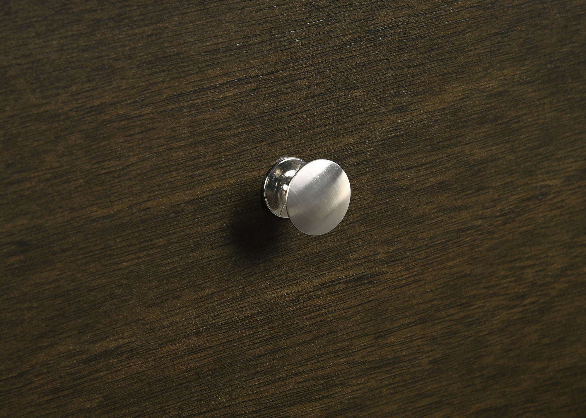 This dresser and mirror set offers a complete solution for your bedroom storage and style needs. The six-drawer dresser provides ample space for organizing your wardrobe, while the matching mirror enhances light and depth in the room. Finished in a rich dark cocoa tone, this set exudes warmth and contemporary elegance, with brushed nickel hardware adding a refined accent. The vertical details on the dresser bring texture and character, perfectly complemented by the clean-lined mirror. Constructed from solid rubberwood and tropical wood veneers, this set is both durable and stylish.